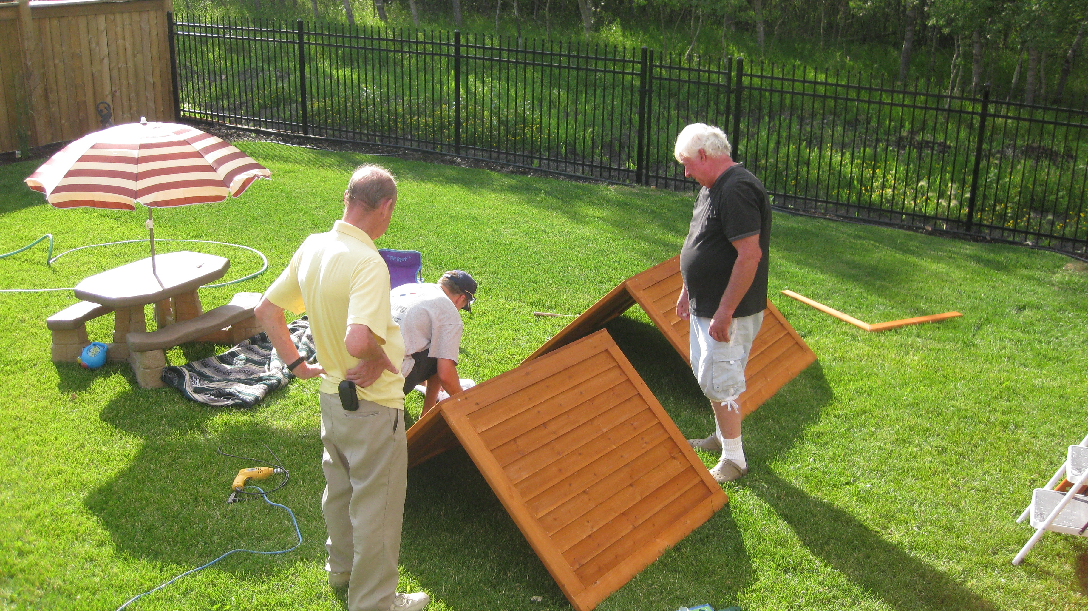 Helping to build a play structure with his son-in-law and buddy, Stan.